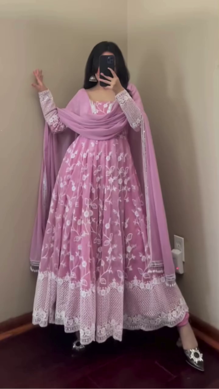 Designer Embroidery Work Light Pink Color Anarkali Suit