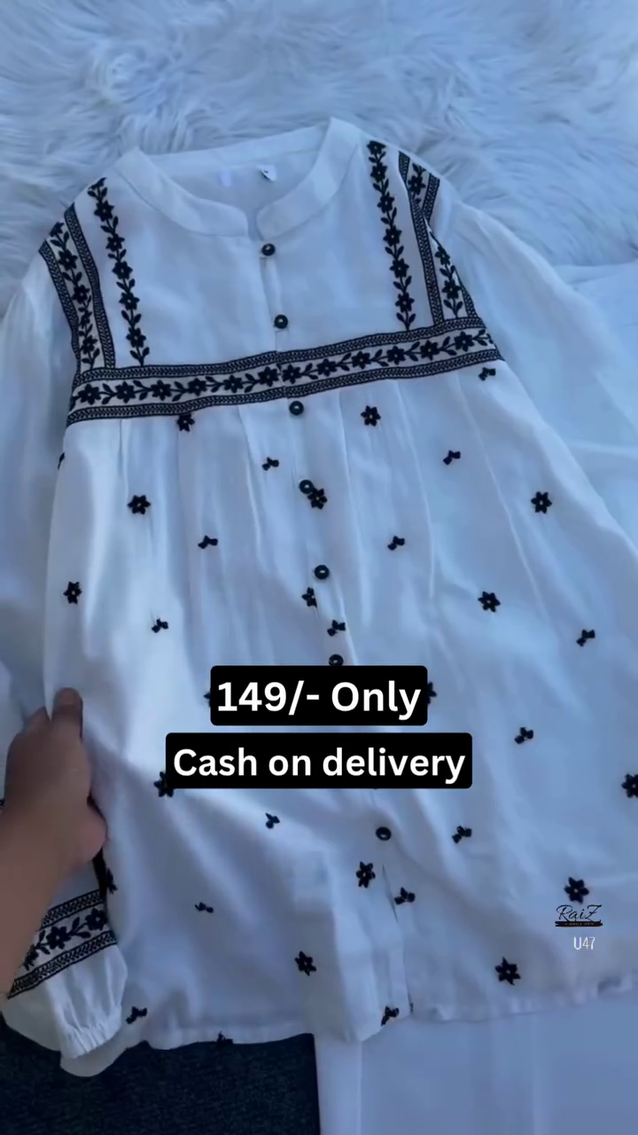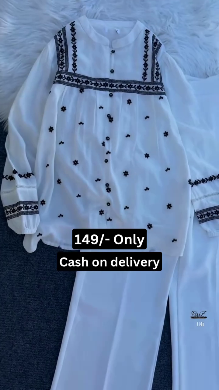 Color Scheme: Crisp white base with striking black floral embroidery for a refined contrast.